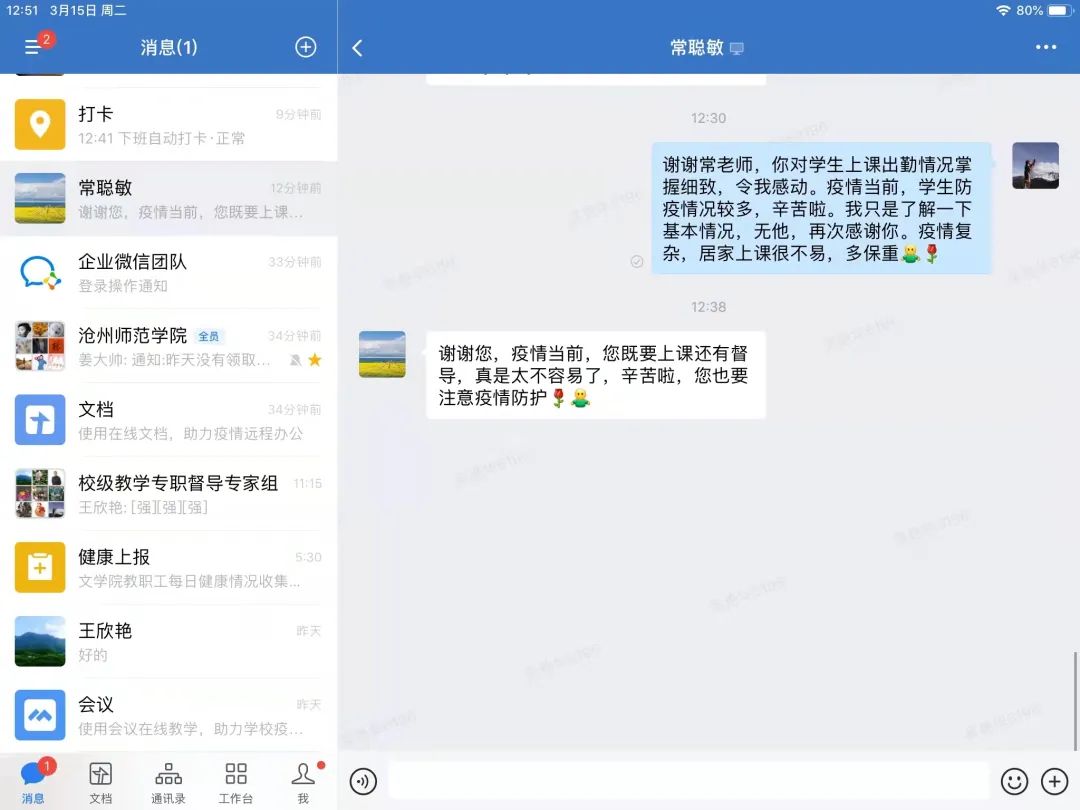 "请学校党委放心,我们专职督导组成员一定会牢固树立大局意识,在疫情影响教学的情况下,更加努力履行督导职责,与全校师生一起共同抗疫度难关!为学校教学质量提高尽职尽责!"