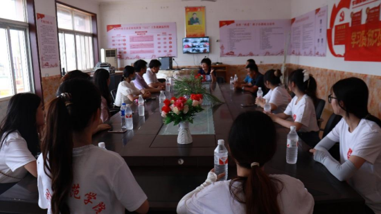 在村委会会议室,村子里的老党员刘中花和齐越传媒学院的师生进行了一次集体交流,刘中花是有着四十余年党龄的老党员,是全国第四届妇女大会代表,也是现在的建档立卡脱贫户。她详细讲述了新葡萄官网驻村工作队帮扶村民的感人故事,说道:“他们不仅仅是驻村干部,想尽千方百计帮助我们村提升经济、搞好建设,更是村民们的朋友,我们早就是一家人了!”