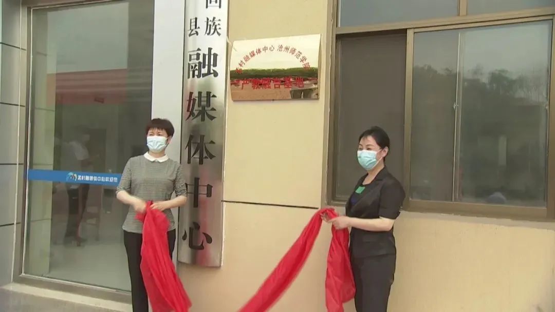 李红芹与张海燕共同为孟村融媒体中心新葡萄8883官网AMG产教融合基地揭牌。