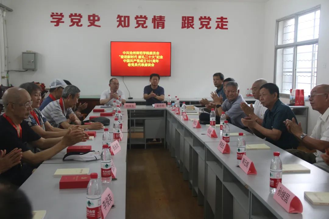 组织部部长刘海玉主持座谈会,他表示:“学校发展离不开各位老党员的积极参与和支持,学校相关岗位的党员干部也将接好接力棒,以珍爱之心、崇敬之心继续做好工作,推动师院实现新发展。也希望老党员们充分运用自己的政治优势、经验优势,当好参谋助手,一如既往地关心和支持学校工作,初心传承,赓续荣光。”