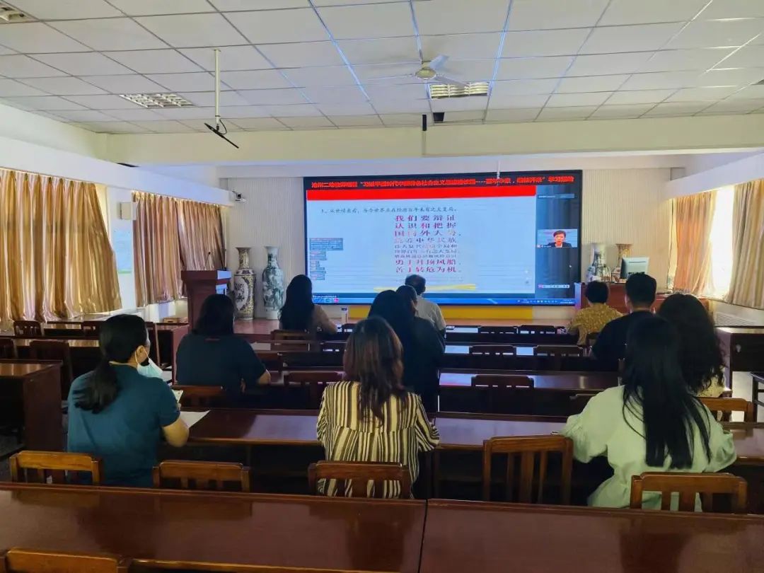 佟立荣从中国共产党发展历程入手,在分析了我国所处的世情、国情、党情、教情,着重阐述了习近平总书记关于教育的重要论述后,指出中国特色社会主义已经进入新时代,我国的发展已经站在了新的历史起点上,面对前所未有的困难和挑战。自党的十八大以来,以习近平同志为核心的党中央,提出了一系列新理念新思想新战略,推动党和国家事业取得了历史性成就、发生了历史性变革。当前我们既要正视困难,又要坚定信心,要以实际行动把党中央决策部署落实到位,以优异成绩迎接党的二十大胜利召开。