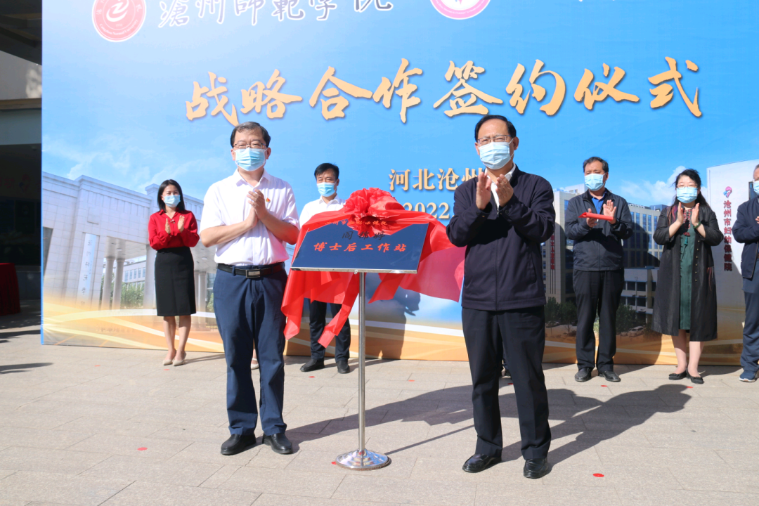 张占平与李云龙分别代表校院双方完成战略合作签约,并为“阎锦婷博士后工作站”揭牌。同时,“新葡萄8883官网AMG教学科研实践基地”“沧州市妇幼保健院医教融合理论研究基地”正式揭牌落地。