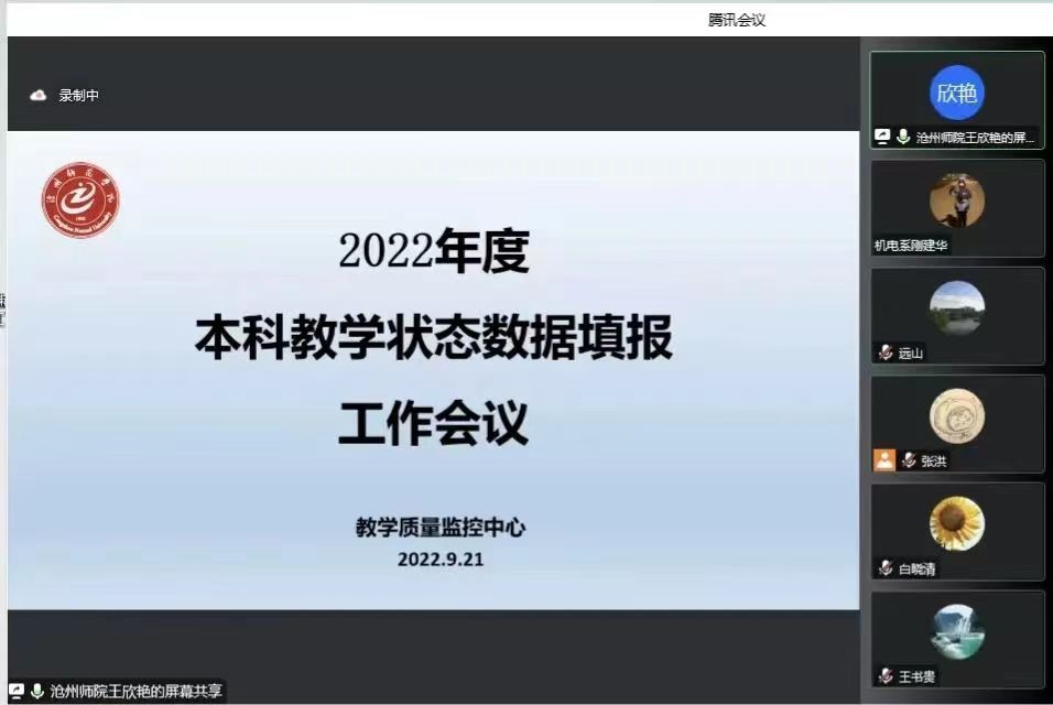 近日,新葡萄官网利用腾讯会议召开2022年高等教育质量监测数据填报工作部署会。党委常委、副校长范小振出席会议。教务处副处长、教学质量监控中心负责人王欣艳主持会议。