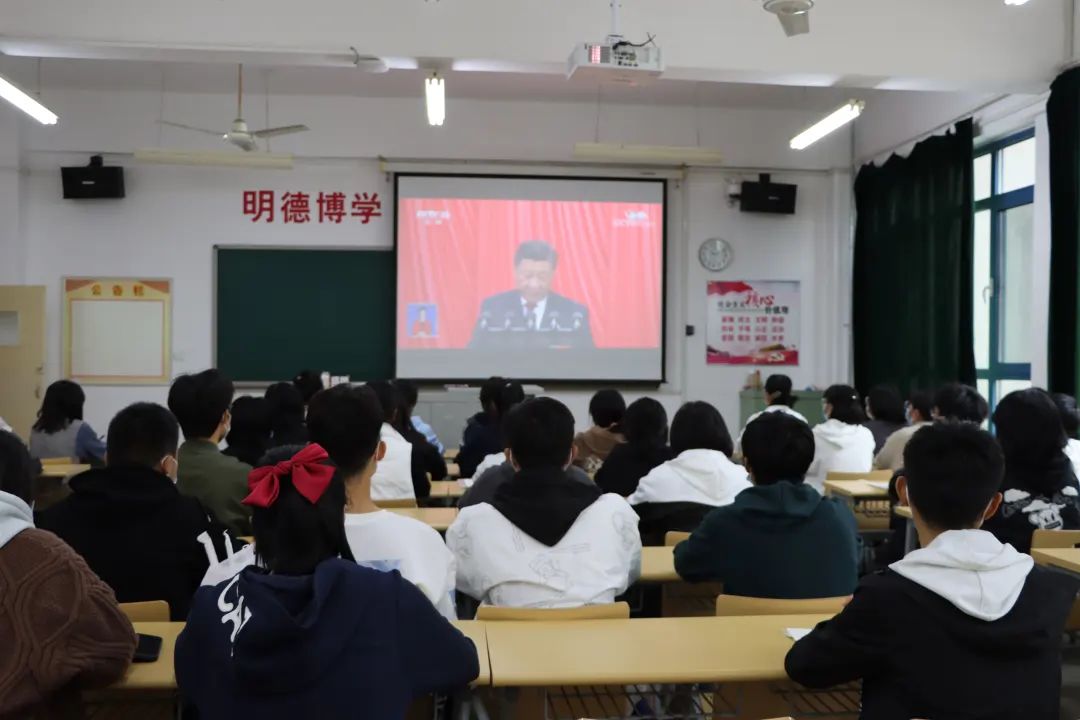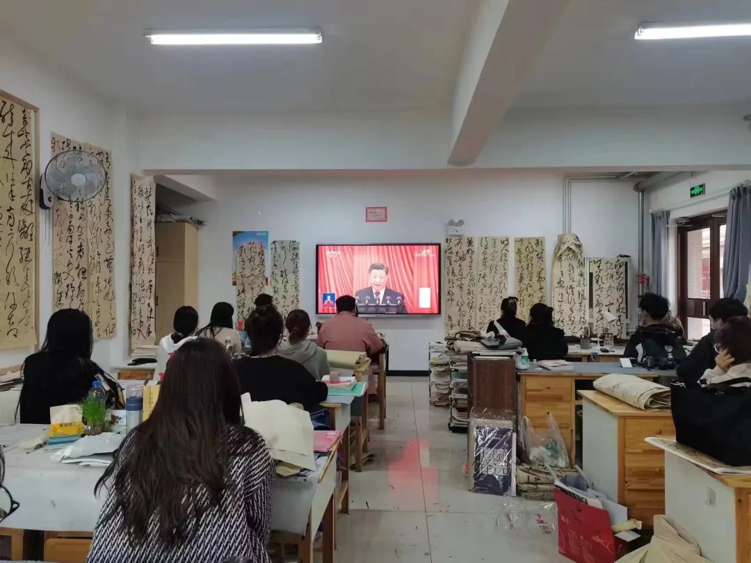 为认真组织好大会收看和学习,校党委高度重视,提前谋划,把所有具有连线转播功能的教室、办公室、会议室向在校师生开放,并有序组织好所有师生的收看。直播过程中,各部门、各学院以党支部为单位实时集中收看;各学生团体、各社团组织在教室、活动室有序观看;无课的教师、学生也通过笔记本电脑、手机电视等形式灵活观看;实现了收听收看的全覆盖。从学校党委班子到院系教职工,从学生党团支部到民主党派成员、离退休教师,在这个举世瞩目的重要时刻,师院全体师生在校园各个会场内相约屏幕前,共同观看时代盛会、热议祖国未来、激发报国情怀。