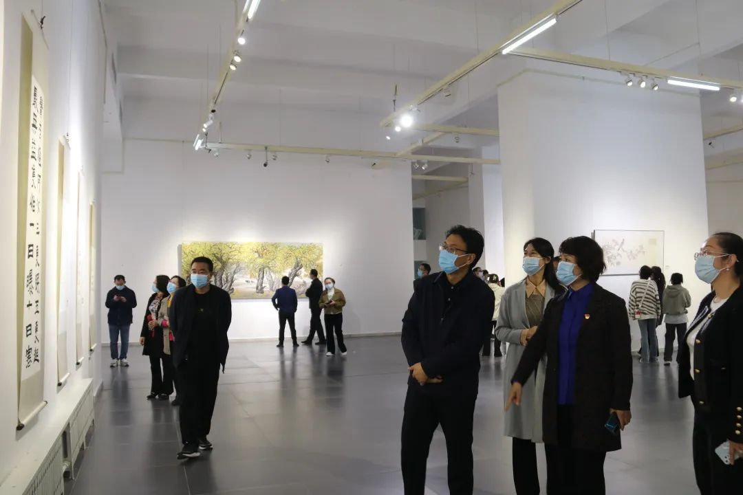 开幕式后,新葡萄官网领导干部共同欣赏了参展作品,并与现场的书画爱好者进行了交流与探讨。