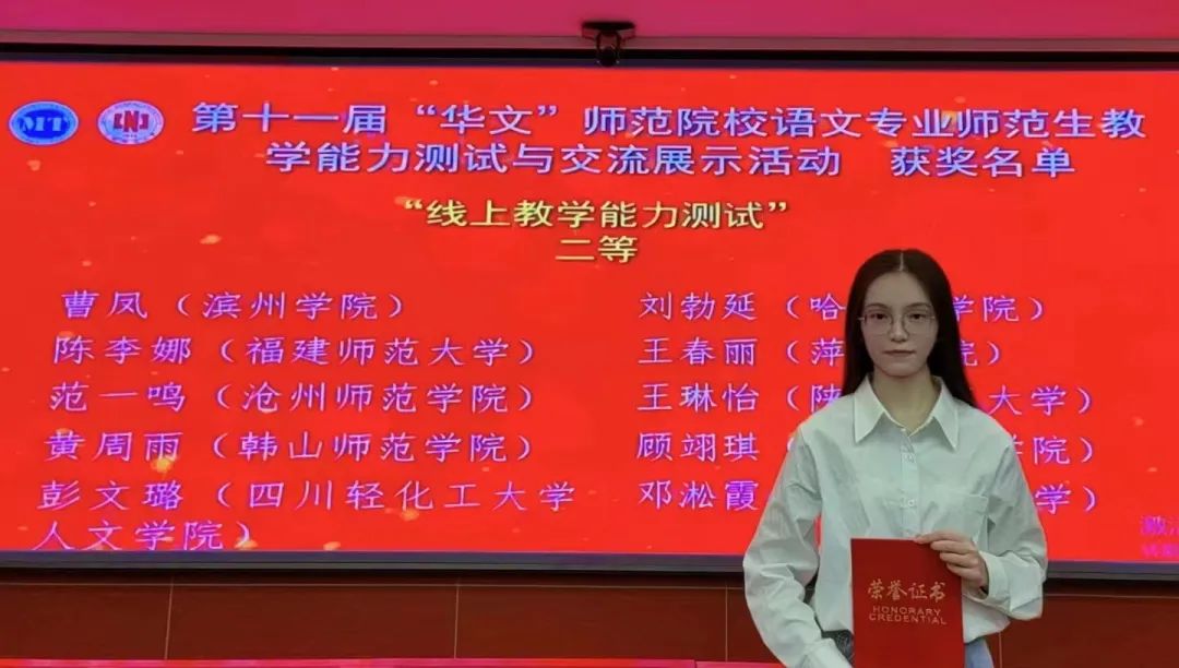 近日,第十一届“华文”杯全国师范院校语文专业师范生教学能力线上测试与交流展示活动落下帷幕。新葡萄官网文学院7名选手在全国71所师范院校选出的500多名优秀选手中,奋勇争先,努力拼搏,在语文教学能力与语文教学设计两个单项比赛中取得2个一等奖,4个二等奖,6个三等奖,2个优秀奖的优异成绩。让我们通过参赛选手的心得体会,感受他们勇于拼搏的奋斗精神和热爱学习的宝贵品质: