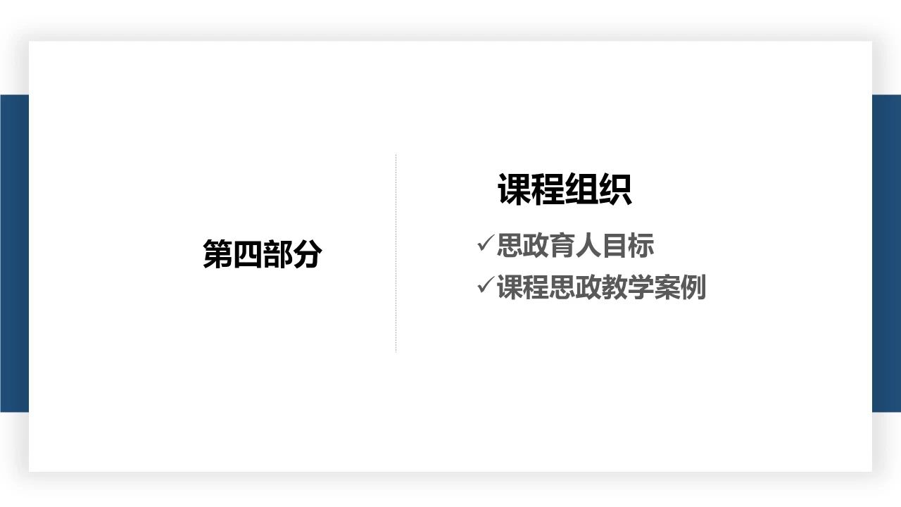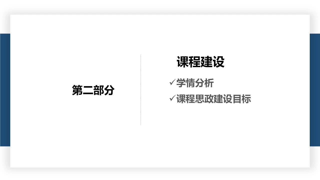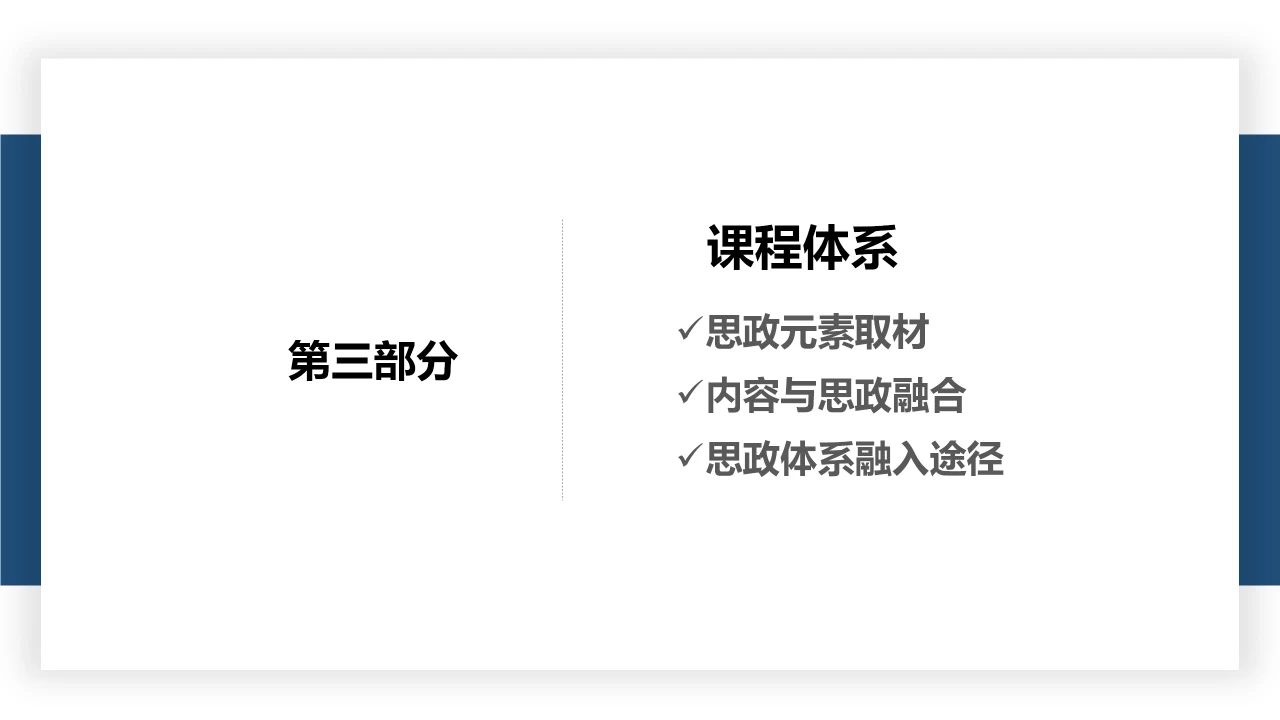 2022年上半年,新葡萄官网开展了新葡萄8883官网AMG第二批课程思政示范课程申报工作。经各二级学院推荐、校内外专家严格评审,最终评选出第二批课程思政示范课程40门,课程思政建设课程12门。为及时总结经验,发掘典型做法,持续深入抓示范、树标杆,推动形成全面覆盖、类型丰富、层次递进、相互支撑的课程思政内容体系、教学体系、专业体系、培养体系、研究体系和评价体系,进一步巩固课程思政建设成果,方便老师们学习、交流,现将第二批课程思政示范课程说课课件分期进行刊发。