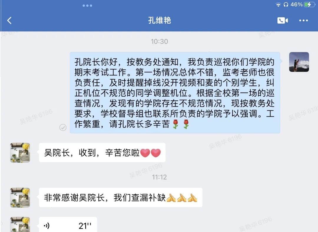12月9日,新葡萄官网2022-2023学年第一学期线上期末考试圆满结束。在副校长范小振带领下,由学校、各学院组织的两级督导巡视队伍通过学习通后台和云视讯会议号对考试全程进行监督检查,发现问题及时反馈各考场,警示相关考生,立行纠正,教学质量保障队伍发挥了良好作用。