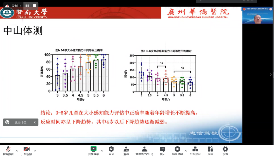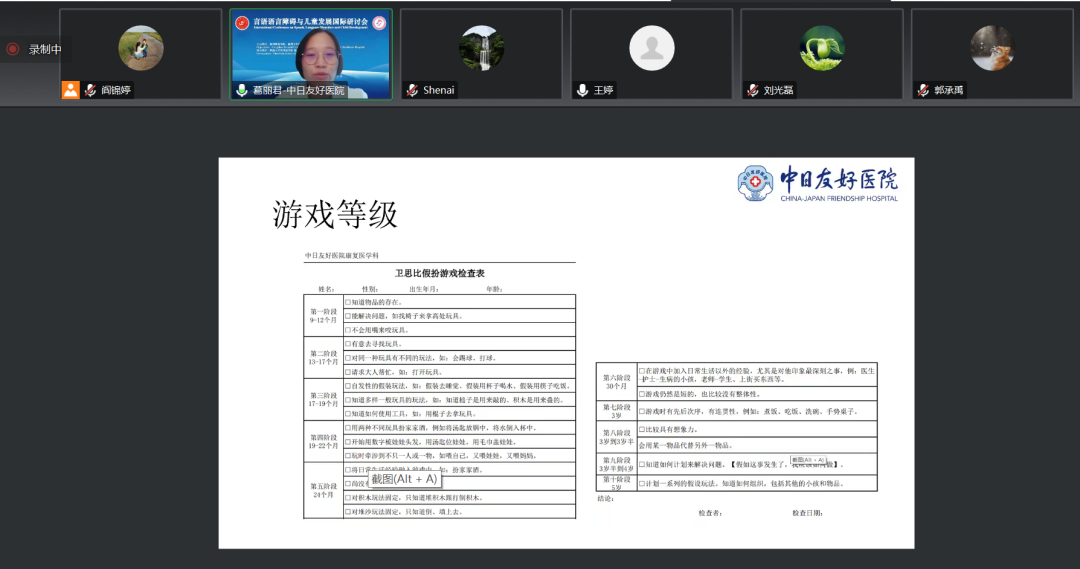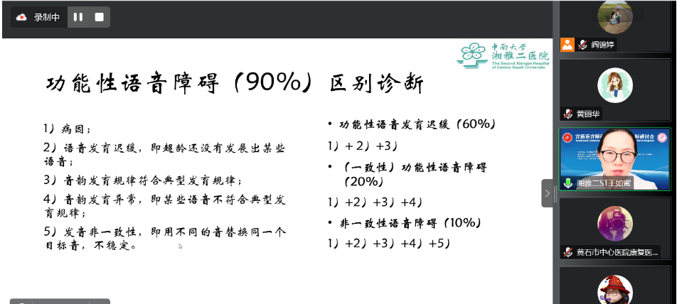 北京大学第一医院儿科王静敏教授、暨南大学附属第一医院脑科医院副院长陈卓铭教授、加拿大温哥华总医院听力室主任齐力教授,首都儿科研究所程大志副研究员、中南大学湘雅二医院康复医学科神经康复专科王如蜜副主任做特邀报告。专家们聚焦言语-语言、认知、沟通、听力等领域的国际前沿问题,分享了最新研究进展和康复技术。