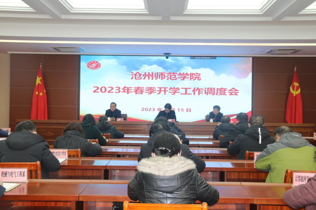 2月15日,新葡萄官网召开2023春季开学工作调度会,专题部署学生返校、教学管理、后勤保障等各项事宜。党委书记云电军主持会议并讲话,校领导姜忠明、高颖、周振平、范小振出席会议并就各自分管工作提出要求。