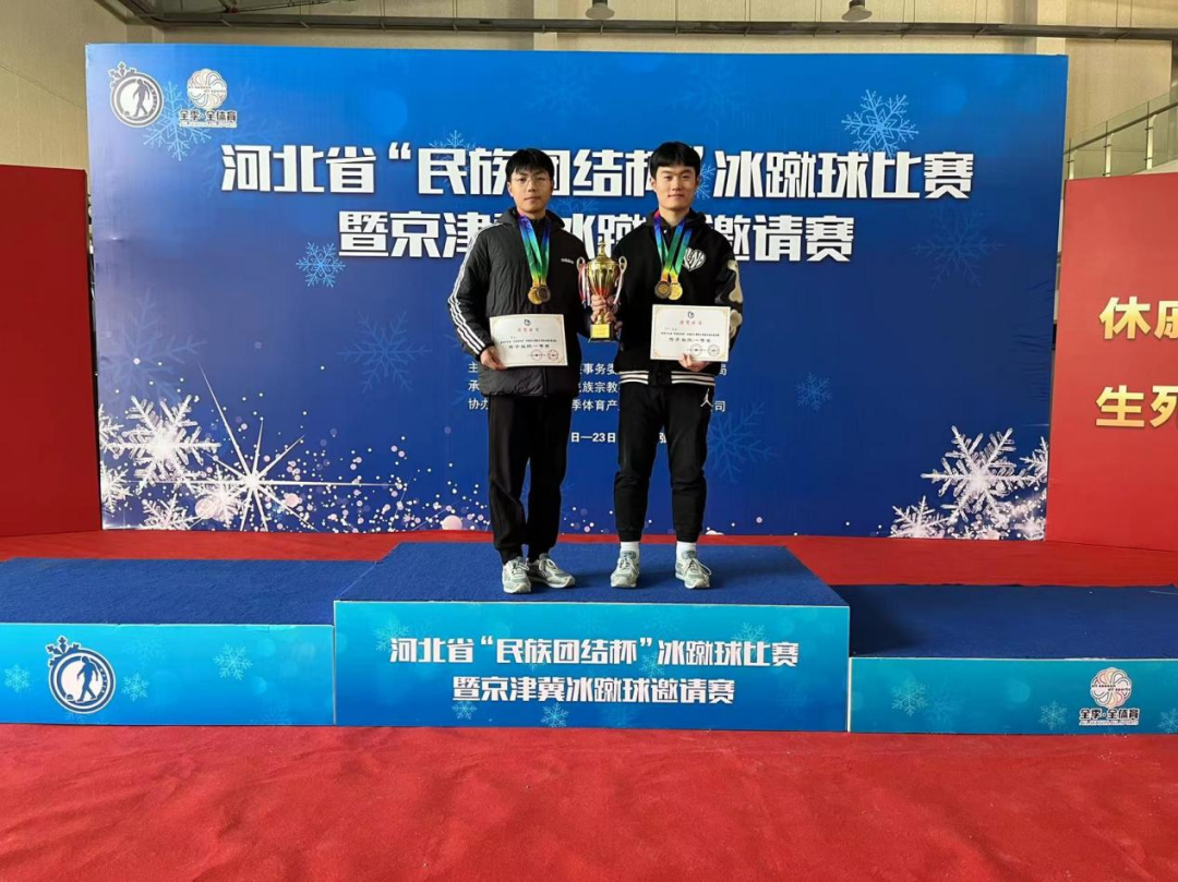 2月22日河北省“民族团结杯”冰蹴球比赛暨京津冀冰蹴球邀请赛在张家口经开区“冰之梦”滑冰馆举行。新葡萄官网体育学院孙静老师带领学生梁恩松、杨文友、裴浩、苑小可、王一参赛,荣获男子双蹴一等奖、团体三等奖和运动员道德风尚奖等多项优秀成绩。