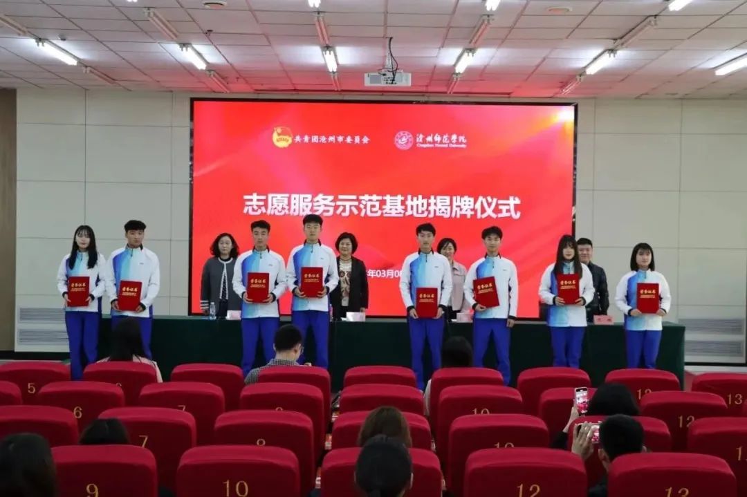 为贯彻落实习近平总书记关于志愿服务的重要指示批示精神,进一步规范志愿服务管理,提升志愿者专业化水平,3月8日,新葡萄官网举办志愿服务示范基地挂牌暨选拔动员大会。共青团沧州市委副书记刘睿,校党委常委、副校长高颖共同为基地揭牌。共青团沧州市委学少部部长沈鹏出席活动。活动由校团委书记李倩主持。