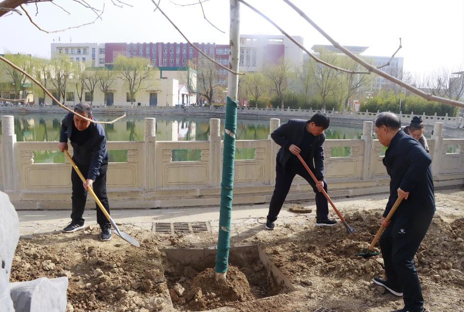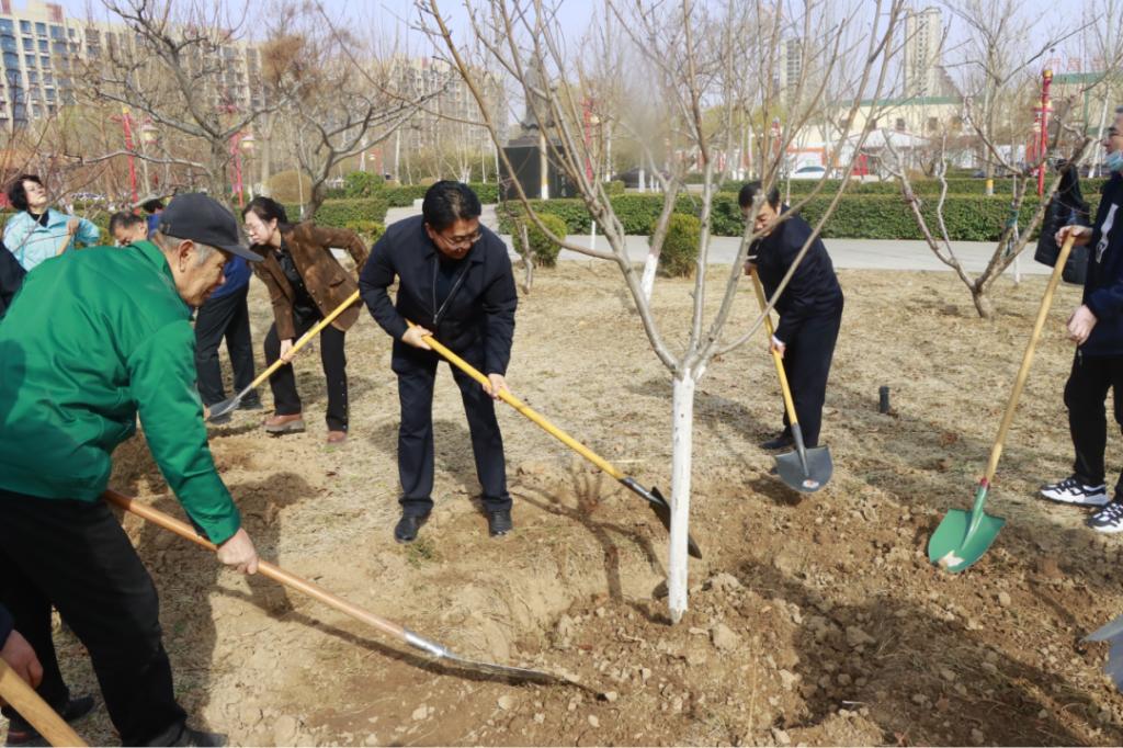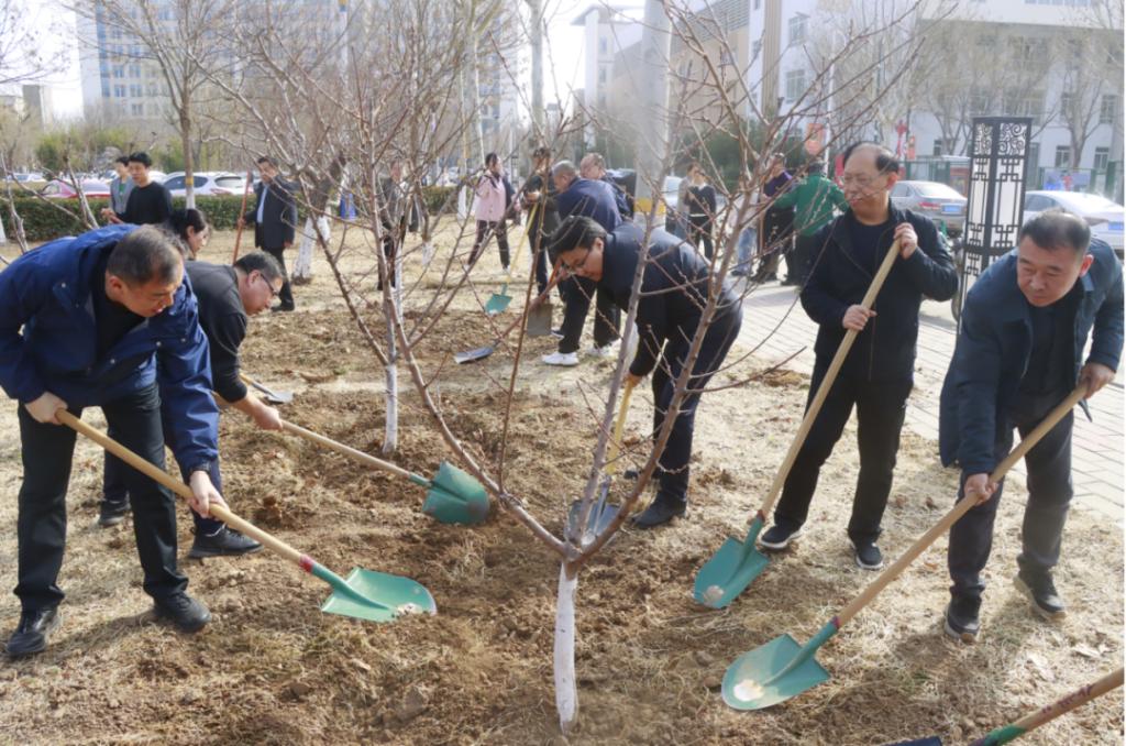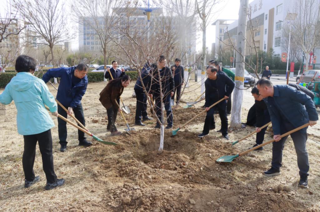 今年是开展全民义务植树运动44周年,3月12日我国第47个植树节,值此之际,党委书记云电军、校长张占平带领校领导班子成员及各行政处室中层干部开展义务植树活动,以实际行动深入学习贯彻习近平生态文明思想,践行绿色发展理念,为校园再添新绿。