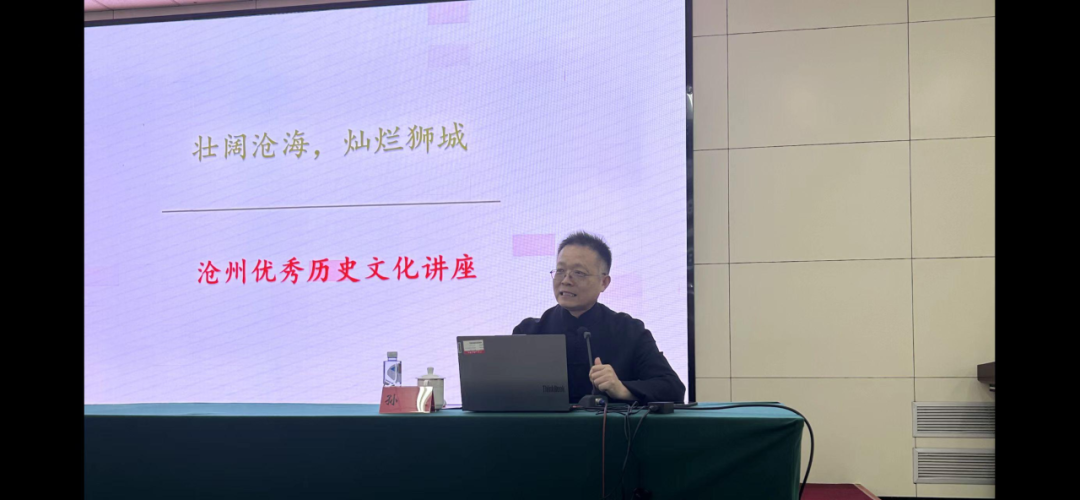 3月20日下午,沧州地域文化研究专家、沧州区域研究所所长孙建教授应邀在新葡萄官网学术报告厅作《壮阔沧海,灿烂狮城——沧州优秀历史文化》专题讲座,并出席沧州地域文化传承与创新研讨会。新葡萄官网党委常委、副校长郭玉秀出席活动并致辞。