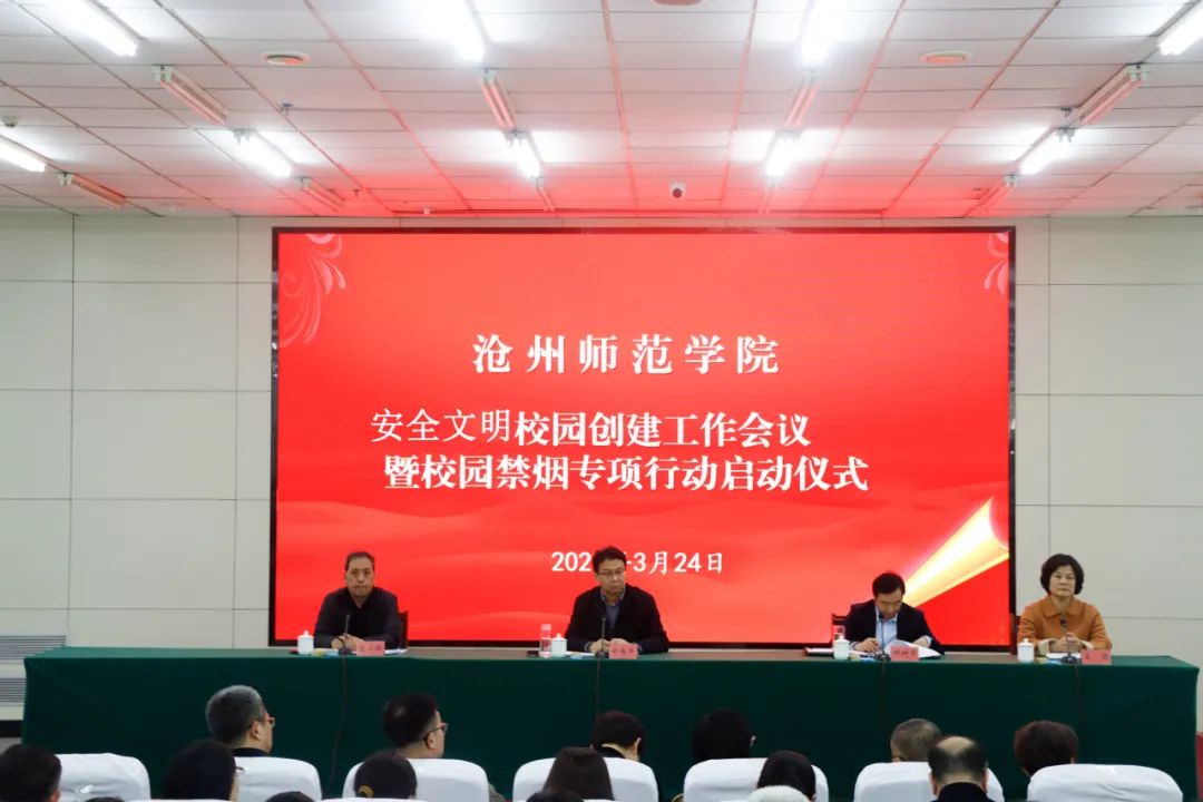 校园安全与文明,关乎每一位师生的切身利益,关乎学校的稳定发展。为扎实推进平安校园建设,打造文明、和谐、无烟的校园环境,3月24日,新葡萄官网在学术报告厅召开安全文明校园创建工作会议暨校园禁烟专项行动启动仪式,党委书记云电军,党委副书记范小振、邢树军,党委常委、副校长高颖出席会议。
