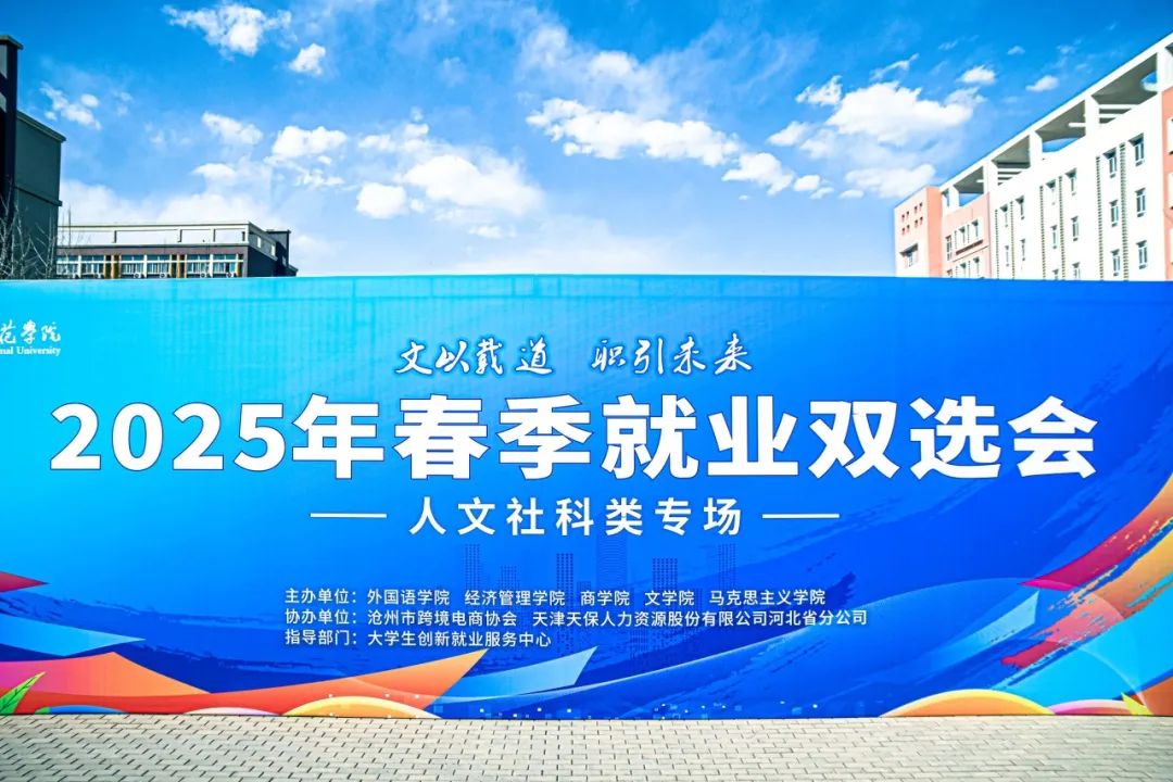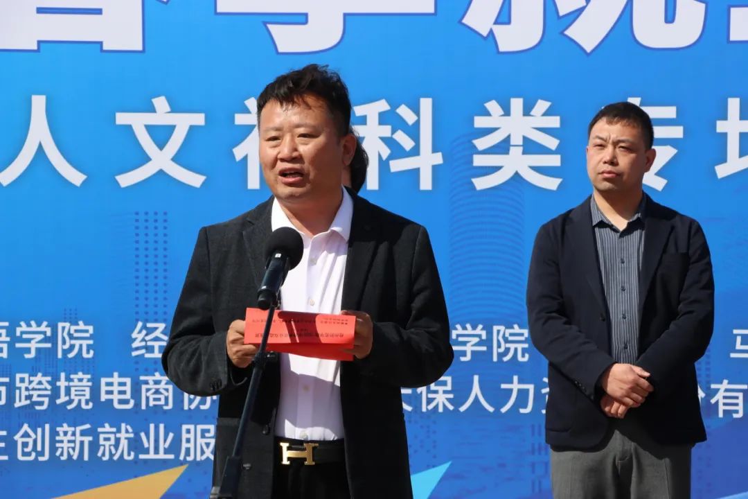 本次双选会由沧州市跨境电子商务行业协会、天津天保人力资源股份有限公司河北省分公司协办。党委常委、副校长高颖,沧州市跨境电子商务行业协会会长徐连星,天津天保人力资源股份有限公司河北省分公司总经理陈文彬,大学生创新就业服务中心负责人以及五个学院的班子成员出席双选会现场。