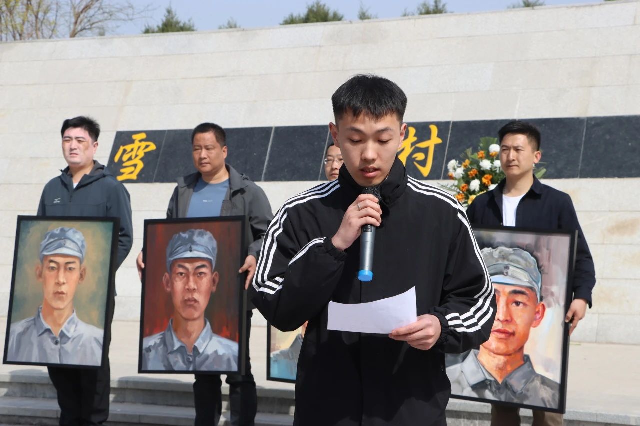 画笔敬英烈,佳作传忠魂。在雪村烈士墓广场,美术学院党总支书记吴春霞将画作庄重地交到了肃宁县退役军人事务局局长张晓川手中,8幅画作在雪村烈士墓墓碑前依次排放。他们牺牲在最美的年华,没有留下一张完成的图像,如今借助这些画作,英雄们的可爱形象永驻在他们用生命守卫过的地方。新葡萄官网干部师生向革命烈士敬献鲜花,鞠躬默哀,接受了生动的党性教育。