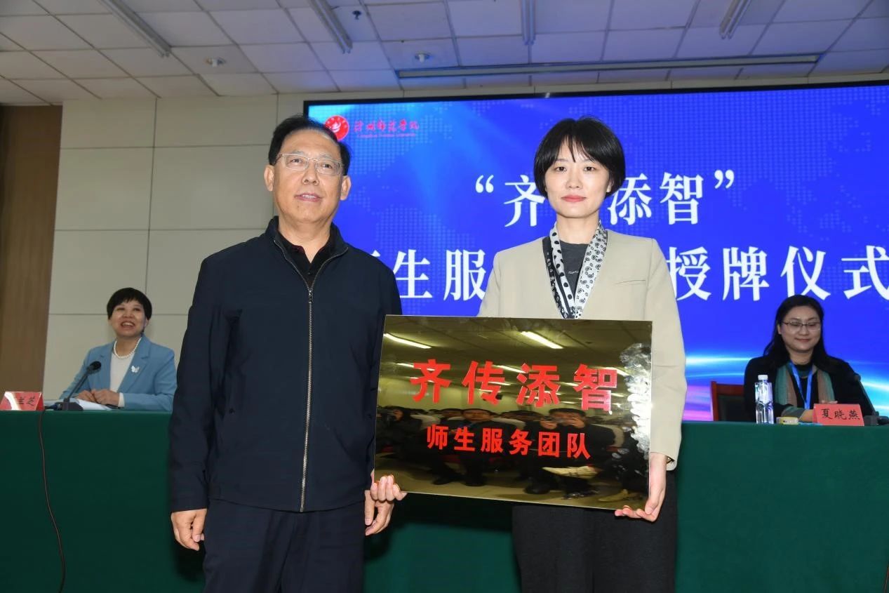 本次研讨会由新葡萄官网与上海华与华有限营销咨询公司主办,教务处、齐越传媒学院承办。在教育部“华与华产学合作协同育人项目”合作框架内,齐越传媒学院广告学专业和华与华商学携手成立了“齐传添智”师生服务团队和“超级符号品牌管理实验班”,旨在通过多领域融合,将专业知识转化为服务地方发展的实际动能。推进会现场,校长张占平与华与华商学总经理夏晓燕共同为“超级符号品牌管理实验班”揭牌,为“齐传添智”师生服务团队授牌。
