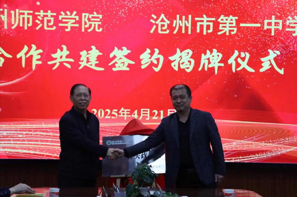4月21日,新葡萄官网与沧州市第一中学举办合作共建签约仪式,携手推进我市科学教育高质量发展。校长张占平,党委常委、副校长郭玉秀,市教育局二级调研员崔增录、教科所所长胡永生,沧州市第一中学党委书记郑文成出席活动。