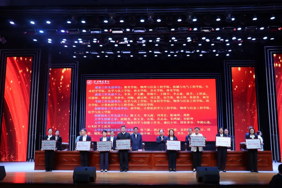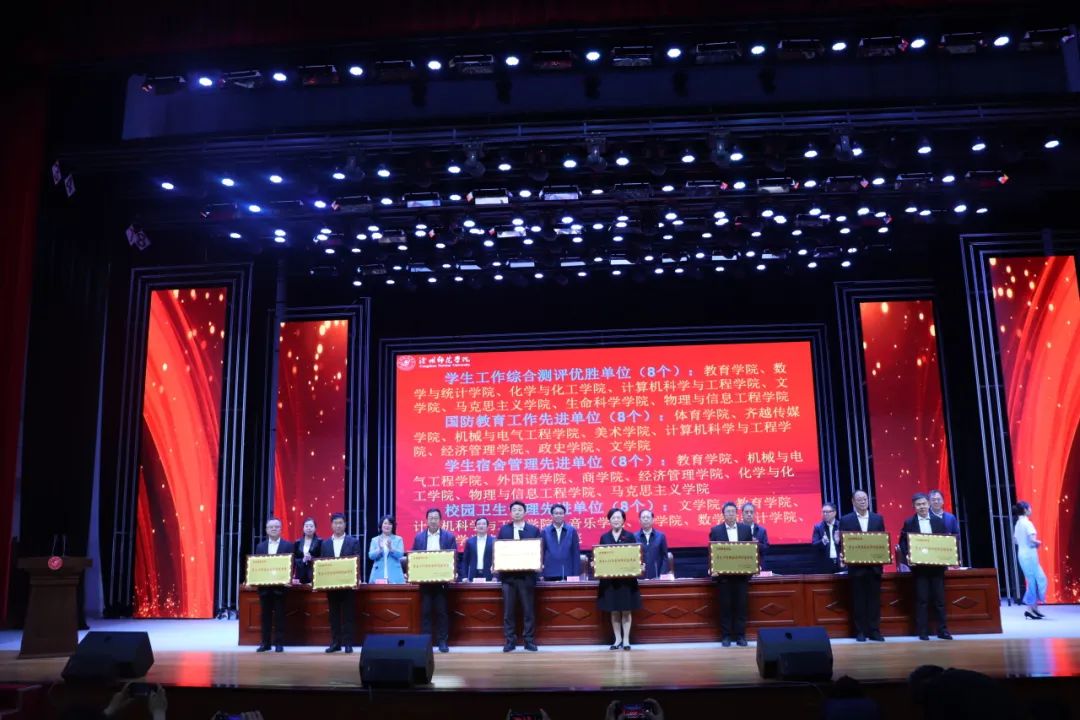 与会校领导为获表彰的集体和个人颁奖。证书和掌声既是对他们过去努力的总结与肯定,更是对未来征程的期许和激励。