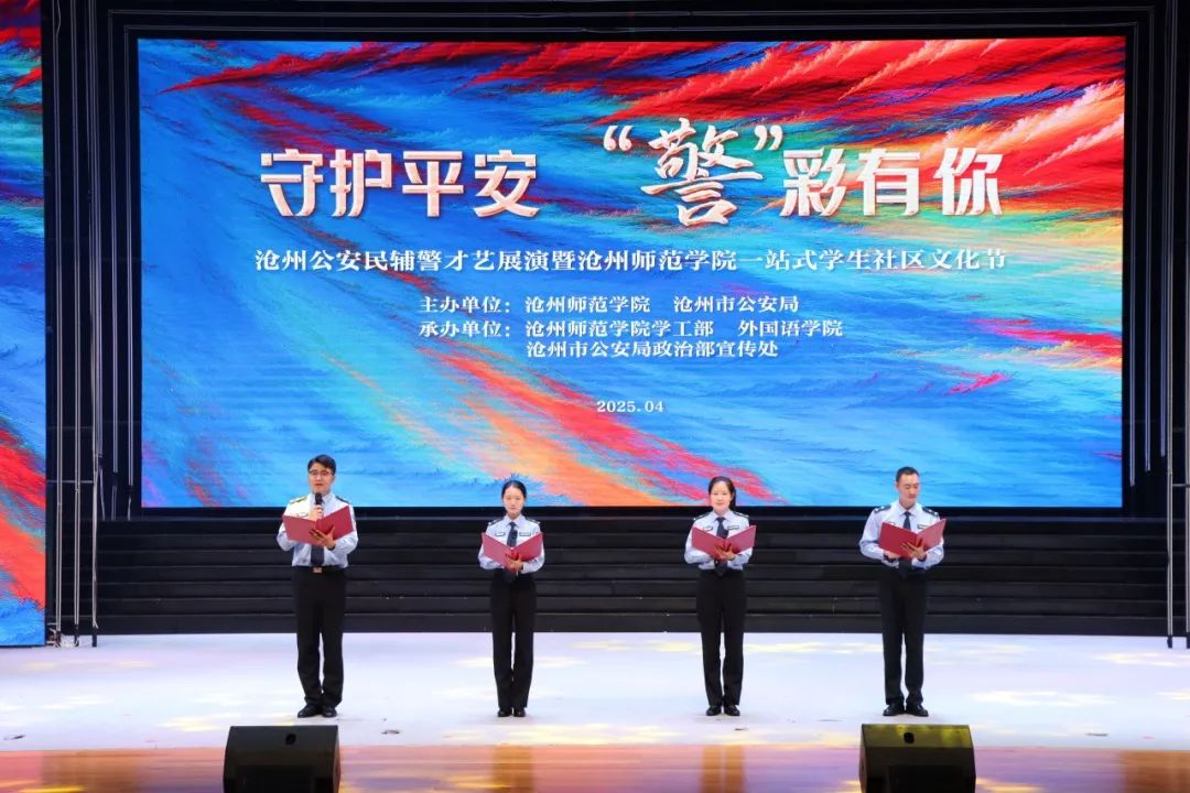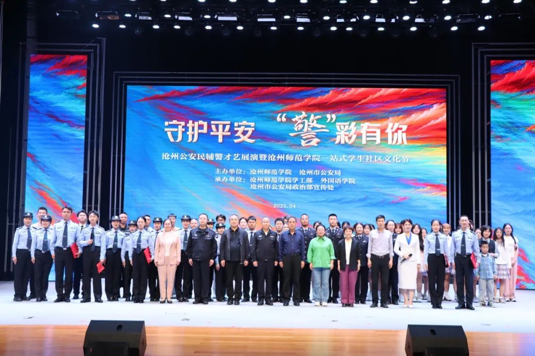为纪念五四运动106周年,激励广大青年勇担时代使命,充分展现沧州公安广大青年民辅警和新葡萄8883官网AMG青年学子的风采,4月29日,由新葡萄官网学工部、外国语学院、沧州市公安局政治部宣传处承办的“平安守护 ‘警’彩有你”沧州公安民辅警才艺展演暨新葡萄8883官网AMG一站式学生社区文化节在齐越大讲堂举行。学校党委副书记范小振,沧州市公安局党委委员、政治部主任石慧堂,政治部副主任、宣传处处长高志熙出席。