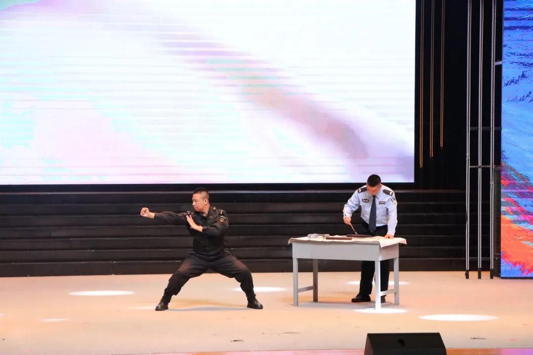 来自公安系统的演员代表和新葡萄官网学子以精彩的演出见证了警校共育的使命传承和青春使命的炽热交融,表达了民辅警对公安工作的忠诚与担当,展现了同学们朝气蓬勃的昂扬姿态。舞蹈《铿锵玫瑰》展现了女警察巾帼不让须眉,柔肩更显担当;歌曲《如愿》展现了一代代公安人为一颗初心赓续奋斗,只为昭昭如愿、岁岁安澜;武术和绘画呈现出荡气回肠的豪迈与赤诚和那朵“守护之花”在现实绽放;情景剧《警察的样子》重温了我们生活中人民警察熟悉的样子……