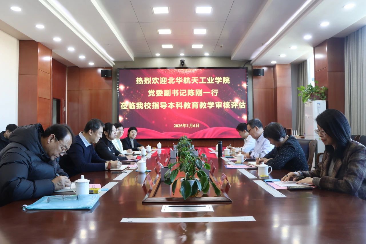 1月6日,北华航天工业学院党委副书记陈刚一行来新葡萄官网交流座谈,指导新葡萄官网本科教育教学审核评估工作。校党委常委、副校长郭玉秀、朱蓬华出席座谈会。