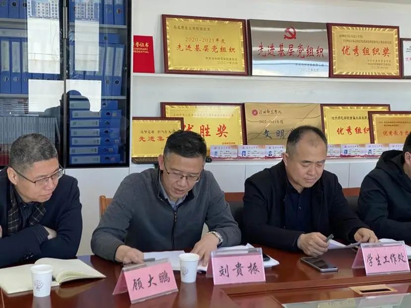 3月19日,宣传部、组织部等15个党政教辅部门在马克思主义学院会议室召开推进思政课教师队伍建设现场办公会,共商马克思主义学院发展与思政课教师队伍建设大计。
