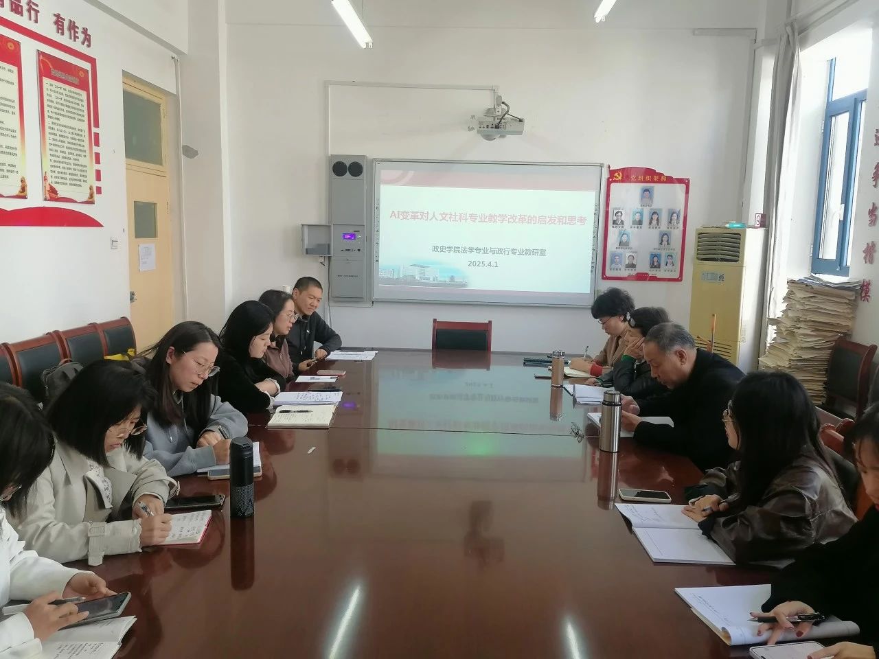 4月1日,校督导专家李树旗教授、刘冬梅教授受邀莅临政史学院,参与法学教研室和政治学与行政学教研室联合开展的"AI变革对人文社科专业教学改革的启示"主题教研活动。副院长霍凤娥及两个教研室全体教师参加