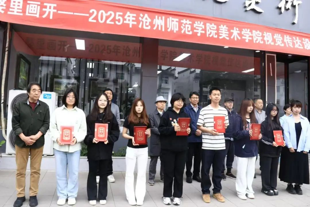 期间,云电军出席“婺里画开——2025年新葡萄8883官网AMG美术学院视觉传达设计专业写生作品展”开幕式。美术学院视觉传达设计专业参加《装饰色彩》课程写生的同学们以设计视角重构山水意境,用线条与色彩记录田野呼吸,展现了专业理论学习与艺术创作实践的深度融合,本次展览共展出写生作品120幅,其中20幅优秀作品以独特的艺术语言,生动呈现了婺源的自然风貌与人文底蕴。云电军勉励师生继续深耕专业、勇攀艺术高峰,何兰芝、王通和实习带队老师为获奖学生颁发荣誉证书。