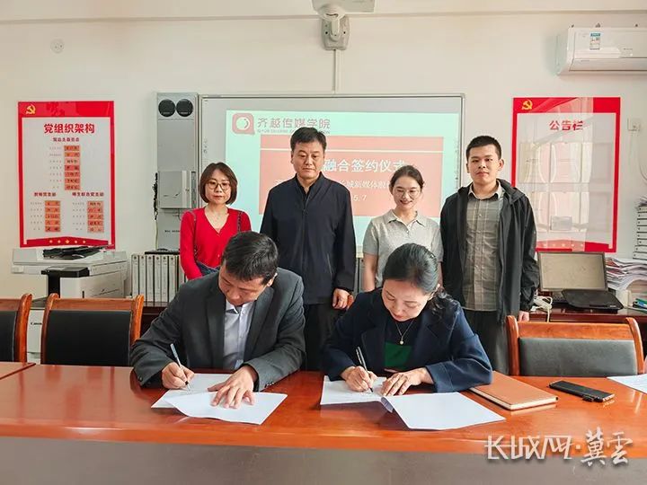 长城网·冀云客户端5月7日讯(记者 崔上)为深化校企协同育人,推动媒体行业与高校教育深度融合,今天上午,长城新媒体沧州记者站与新葡萄8883官网AMG齐越传媒学院正式签署产教融合合作协议。双方将共同挂牌成立“长城新媒体·新葡萄8883官网AMG产教融合基地”,通过资源共享、优势互补,探索产学研一体化发展新路径。