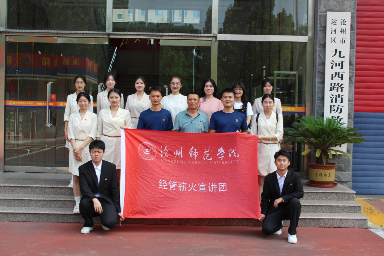 青春之火可以燎原,挺膺担当薪火相传。为深入学习贯彻习近平新时代中国特色社会主义思想,切实推进青年学生的社会实践教育和思政教育工作,引导广大青年学生在社会实践中受教育、长才干、做贡献,7月8日,经济管理学院薪火宣讲团来到九河西路消防救援站,开展了以“习近平总书记在河北的足迹”为主题的大学生暑期社会实践活动。经济管理学院党总支书记张金峰、副书记李艳、团总支书记李琳、教师鲍梦蕊参加活动。