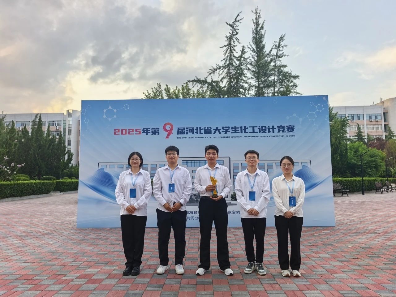 本届河北省大学生化工设计竞赛由河北省教育厅主办、石家庄学院承办,吸引了河北工业大学、燕山大学、河北大学等28所高校参加,代表了我省化工类学科竞赛的最高水平。7月21日至23日为竞赛的决赛环节,共有34支队伍现场展示,历经两轮激烈角逐,化学与化工学院学子凭借优秀的设计作品和出色的答辩表现,实现突破,荣获河北省大学生化工设计竞赛特等奖,展现了扎实的专业功底与较强的创新能力。