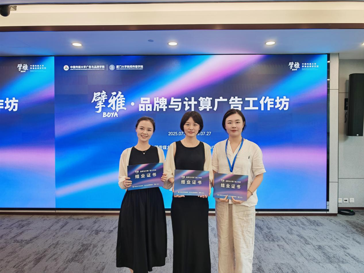 7月26日至27日,第三届擘雅・品牌与计算广告工作坊在中国传媒大学成功举办。新葡萄官网齐越传媒学院副院长安琪,广告学专业负责人于园园、播音与主持专业负责人沙莎赴京参会,与来自全国 60 余所高校及企事业单位的专家学者围绕数智时代广告教育变革、品牌传播创新及计算广告发展等前沿议题展开深度交流,为新葡萄官网广告学专业建设注入新动能。