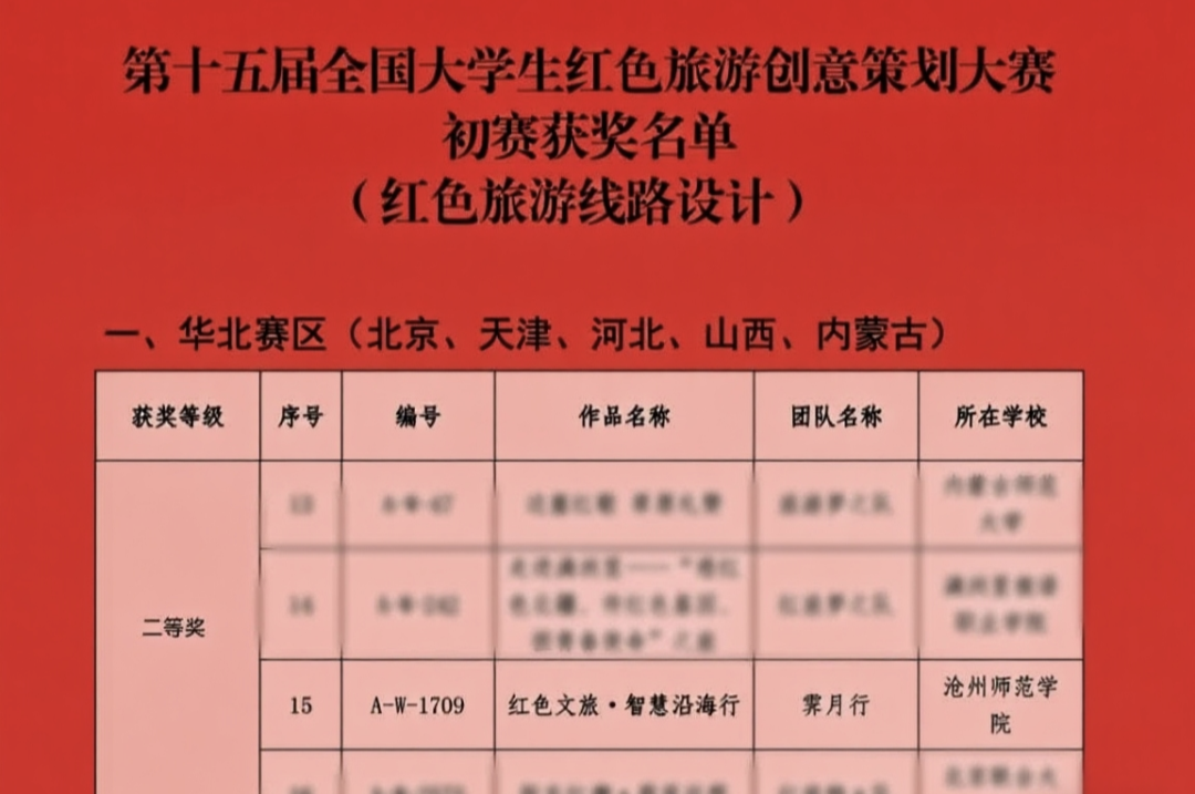 当红色基因遇上青春创意,当文旅智慧碰撞实践火花,捷报便如约而至,新葡萄官网商学院酒店管理专业学子凭借扎实功底、创新思维与实践魄力,在第十五届全国大学生红色旅游创意策划大赛初赛(华北赛区)中,于红色旅游线路设计、红色旅游文创产品设计两大赛道全力冲刺,均斩获二等奖佳绩!