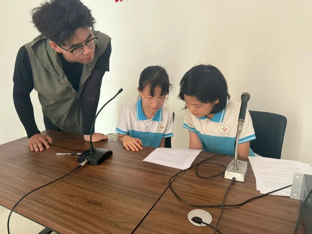依托张兴屯村红旗广播站资源,实践团开展小广播员专项培养。团队成员结合专业所学,向学生系统教授新闻播报、故事讲述等播音技巧,重点进行气息控制与情感表达训练。为让学生直观感受广播工作,实践团还安排实地参观广播站,详细讲解广播设备使用与节目制作流程,并组织模拟播音实践,通过“理论+实操”的模式,帮助学生快速掌握广播技能,目前已初步选拔出5名潜力突出的小广播员,为乡村文化传播注入新生力量。