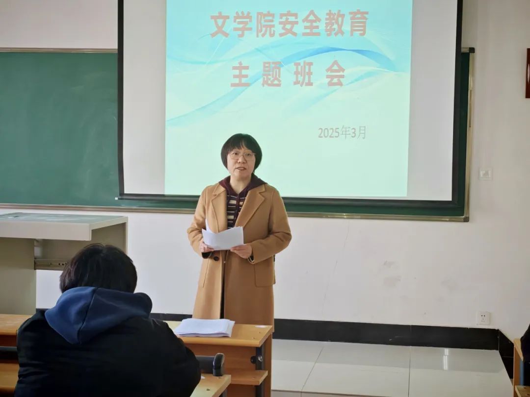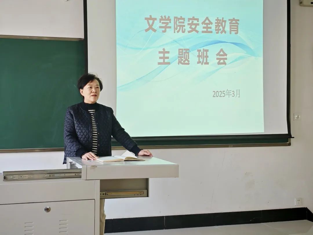 在安全教育主题班会上,文学院党总支书记金晓雪强调,安全是一切工作的前提和底线,要强化“安全第一,预防为主”的意识,她号召全体同学积极行动起来,人人争做安全践行者和守护员。