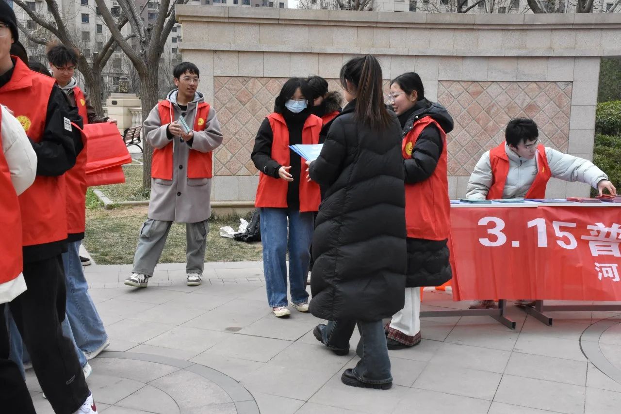 在全面推进法治社会建设的时代浪潮下,为进一步扩大消费者权益保护宣传的覆盖面,切实提升社会公众的自我防范能力与法治意识,3月15日,政史学院携手河北开一律师事务所,在宏宇·亚龙湾社区成功开展了一场意义非凡的普法宣传志愿活动。本次活动由法学社指导老师唐逸凡精心策划与组织,青年法学社的同学们满怀热忱、积极响应,共同投身到这场法律知识的传播之旅中。