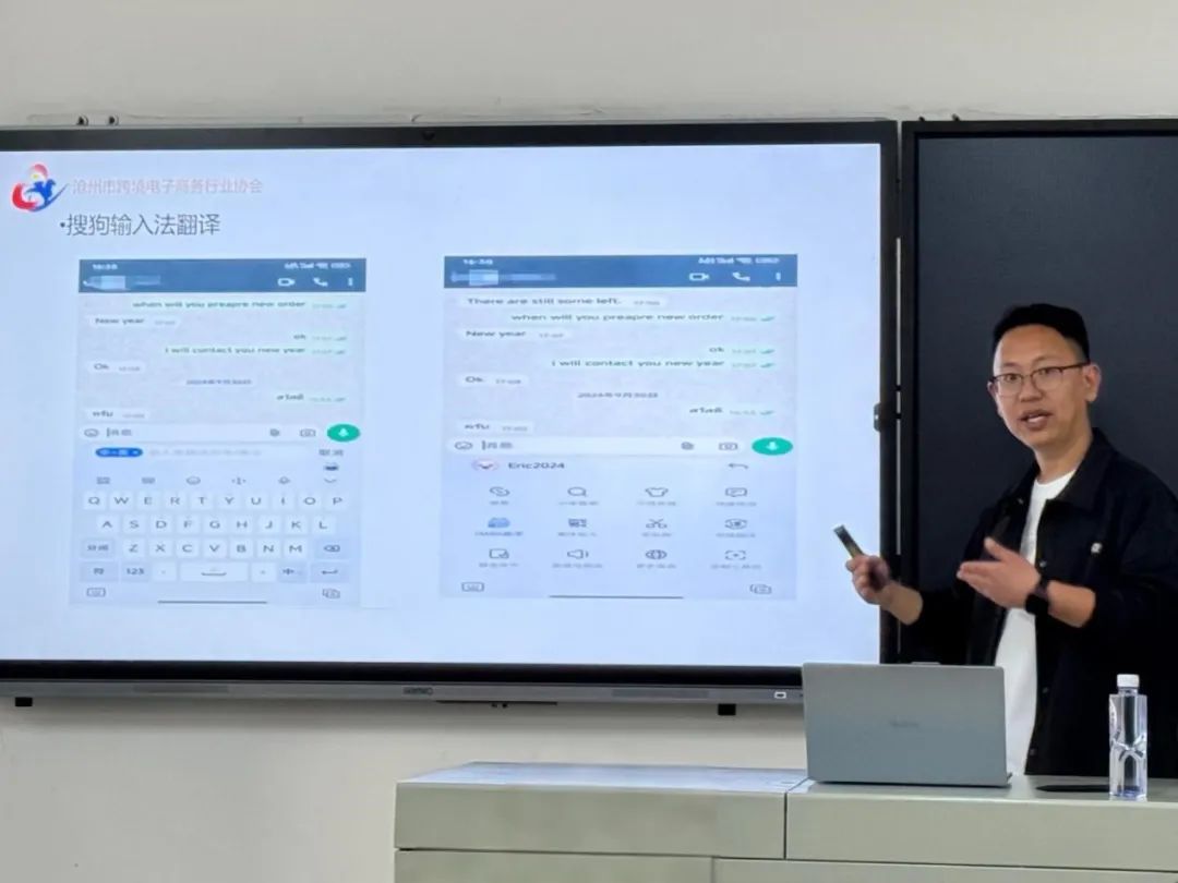 韩江伟老师以《外贸人员基本办公能力》为题,围绕数据、客户、软件、产品四方面展开讲解。韩江伟现场演示了如何掌握编码查询、市场趋势分析等外贸核心技能,让同学们学会数据分析。他以“法兰产品”为例,详细拆解从数据筛选到客户开发的全流程,并指导学生运用Excel进行图表制作。韩老师通过真实案例对比,生动解析商业发票、装箱单和海关文件等文件的制作要点,并引入“加密单据”概念,帮助学生建立信息安全意识。课堂采用互动式教学模式,一问一答,引导学生在回答中深化知识理解。课堂最后,韩老师为学生进行了一对一的答疑解惑,让同学们受益匪浅。