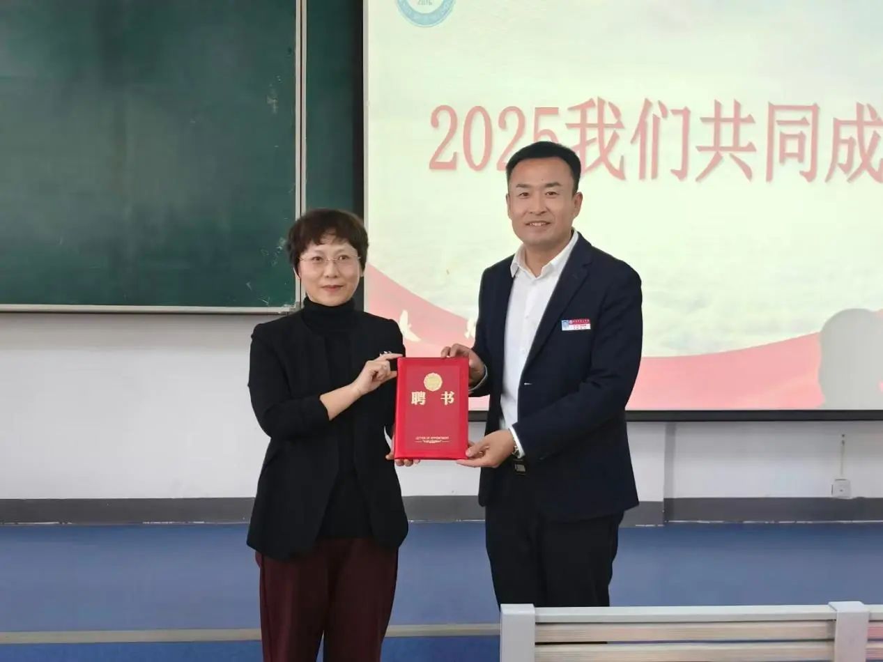 外国语学院院长王娜为韩金峰颁发“新葡萄8883官网AMG外国语学院职业发展校外指导教师”聘任证书。