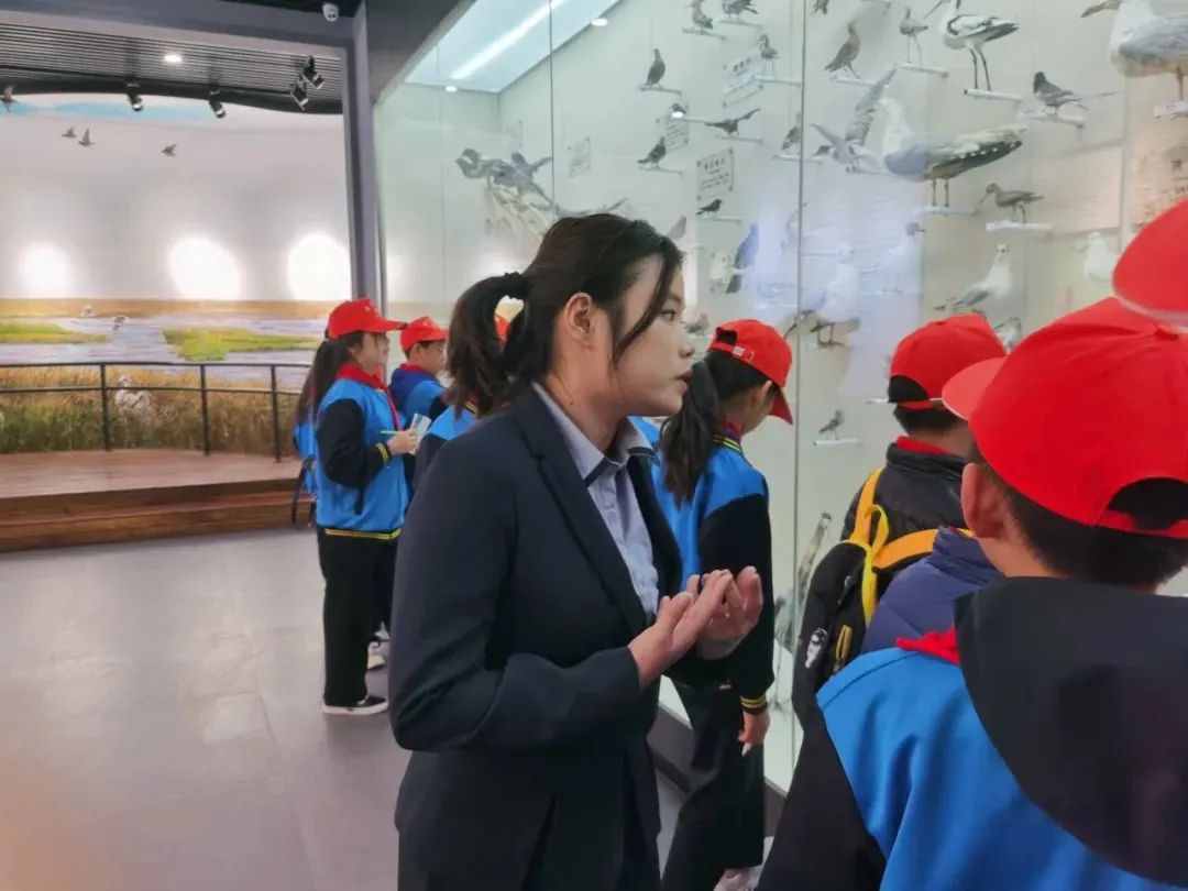 下午,沧州海关工作人员和黄河路小学师生来到新葡萄官网开展活动,生命科学学院教师陈新、李末和孙洋,带领明德礼仪社成员位子颜、杜林霖和青年志愿部志愿者接待了来访人员。讲解员组织小学生们到生物标本馆展厅,并依次引领他们参观了大鸨区、无脊椎动物区、两栖类、爬行类、哺乳类和鸟类、昆虫类等展区,讲解员运用专业的知识储备讲解,并耐心回答小学生们提出的问题。