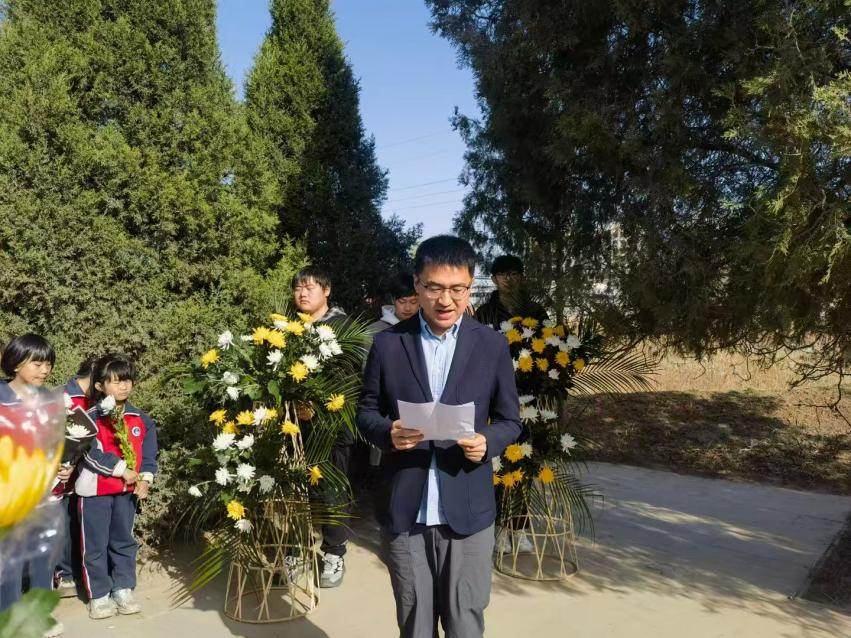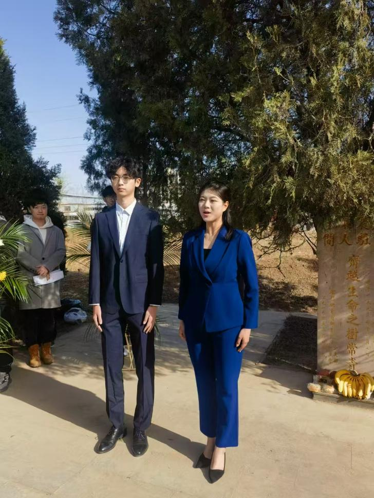 上午8时30分,祭扫仪式在齐越墓前庄重举行。姚官屯镇党委、姜庄子村、姚官屯镇中心校、姜庄子吉庆小学、沧州日报社及新葡萄官网师生代表100余人参加活动。齐越先生当年房东孙媳赵会云深情讲述了齐越在姜庄子村工作生活的往事,重现了老一辈播音艺术家扎根基层、服务人民的初心。齐越传媒学院武峻老师代表全体教师表达了对齐越先生的敬仰和追思之情,学生代表张馨予、赵昊天朗诵《齐越墓前的思索》,全体人员集体诵读《齐越心语》并献花致敬,表达对这位播音界泰斗的深切缅怀。