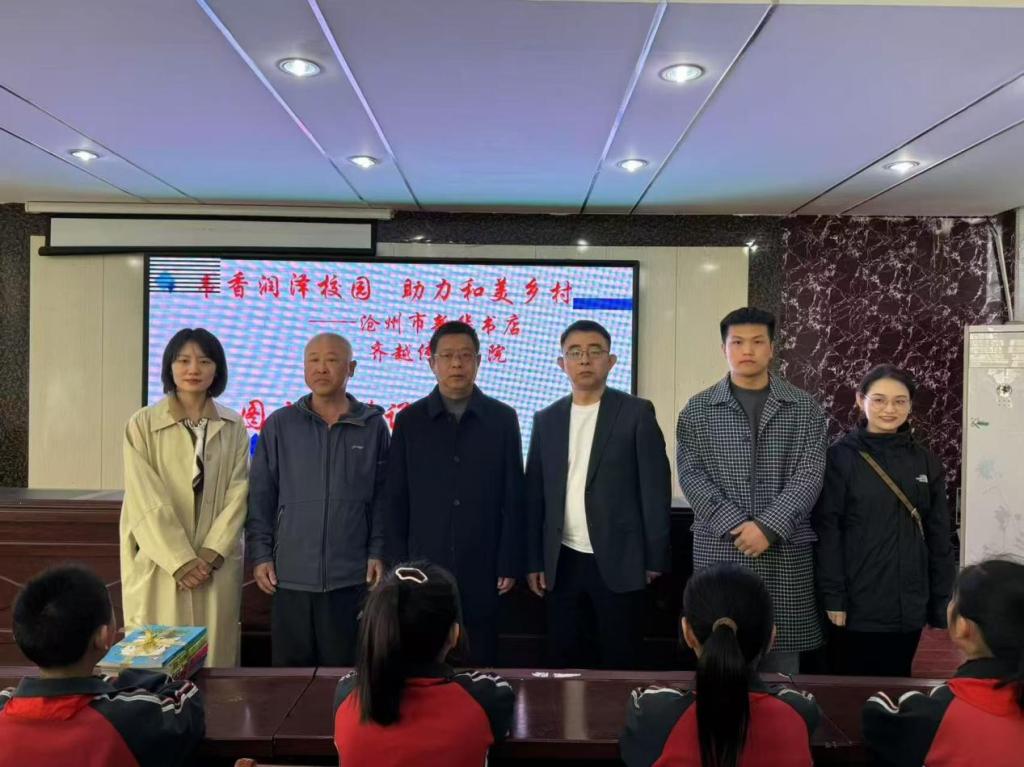 九三学沧州市委秘书王晓,沧州市新华书店副总经理赵国良,沧州日报社融媒体视觉中心主任傅强,沧州中西医结合医院心内一科主任王庆凯、手外四科主任王华柱、糖尿病四科主任迟秀娥、核医学科主诊医师马宇,姚官屯镇党委副书记周海洋、姜庄子村党总支书记王玉岭,姚官屯镇中心校校长张华文、姜庄子村吉庆小学校长张健,新葡萄官网齐越传媒学院院长张海燕、副院长安琪,党委宣传部科长李杰以及师生代表参加活动。