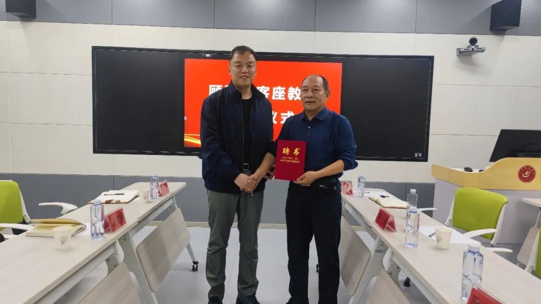 朱蓬华为顾军华教授颁发客座教授聘书。他表示此次聘任将进一步加强两校教育领域的深度合作,要求项目组充分吸收专家建议,将系统建设与师范院校特色相结合,打造可复制推广的智慧育人样板工程。