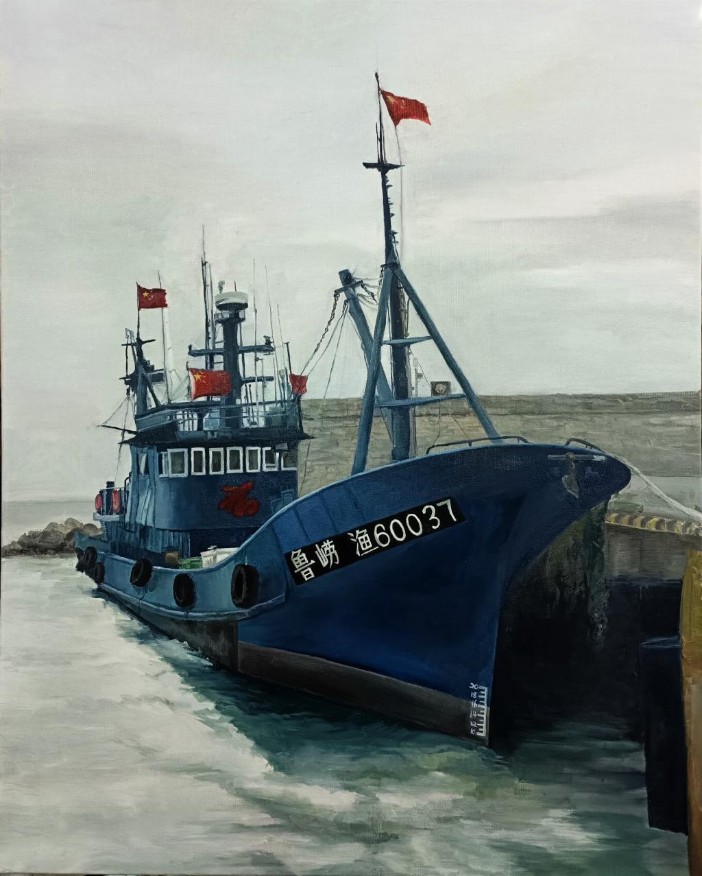 在本次的创作中,我力求传达渔船所承载的生活气息与文化内涵。通过色彩、线条和光影的巧妙运用,我试图捕捉渔船在波光粼粼的海面上摇曳的动感,以及渔民辛勤劳作的场景。创作中,我重视渔船结构与质感的真实表现,同时融入个人情感与审美理解,使之不仅是客观存在的再现,更是心灵的投射。渔船油画不仅是对大自然和劳动者的赞美,更是对海洋文化和渔村生活的深刻诠释。通过艺术创作,我希望能够引起观者对传统渔业的关注,以及对海洋环境保护的思考,传递一种和谐共生的理念。
