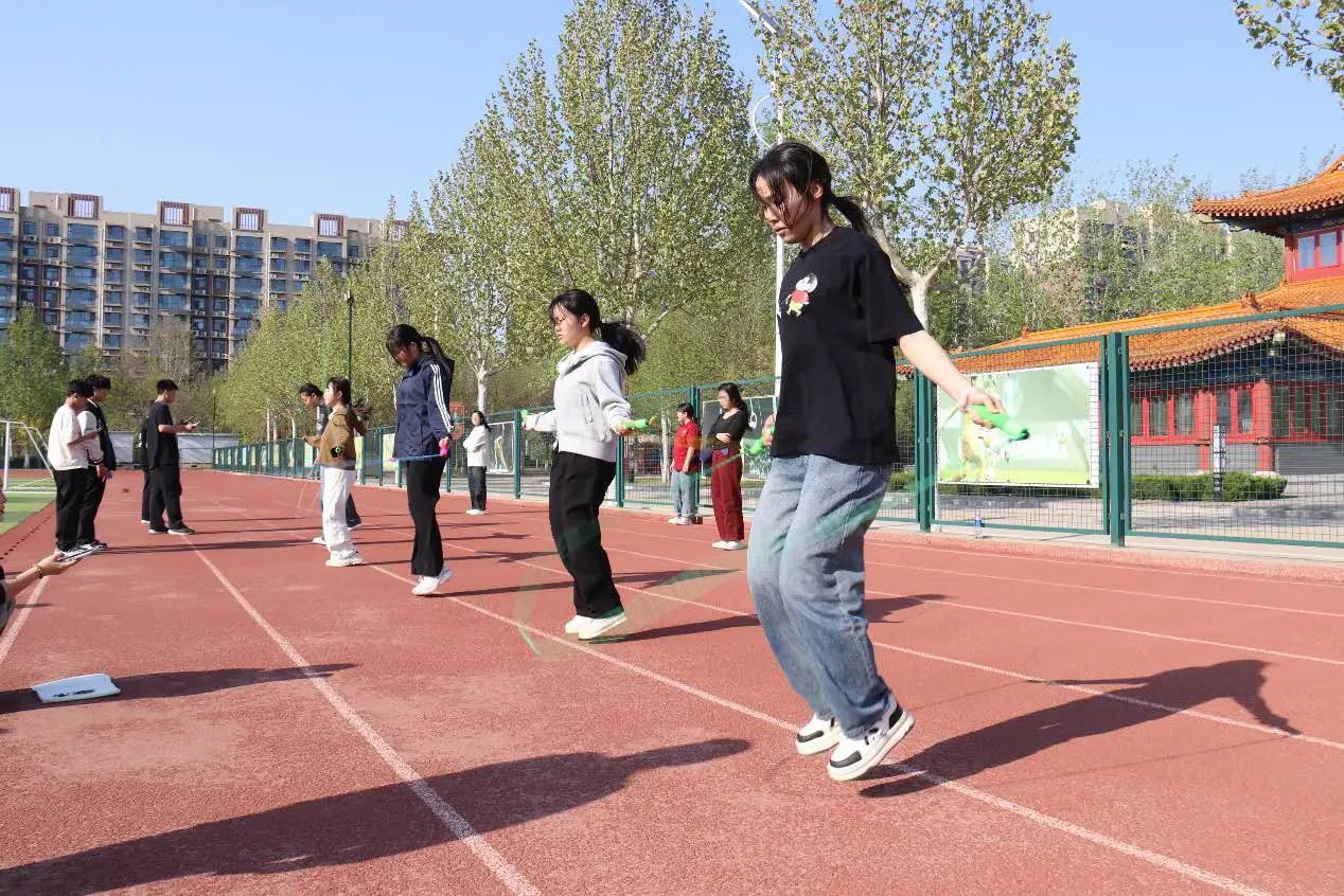 跳绳比赛中,选手们各显神通。单人跳绳的同学身轻如燕,跳绳在他们手中飞速转动,令人目不暇接。他们伴随着节奏明快的跳绳声,跳出了青春的活力与激情。
