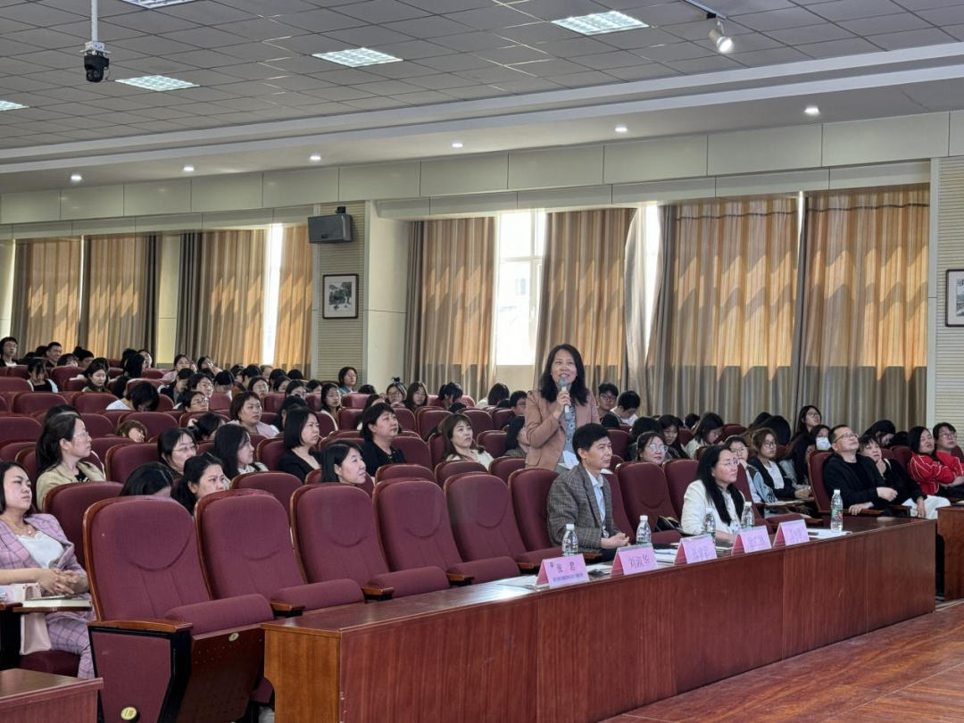 五中教师丁燕作了“聚焦中考变化 提升高效课堂”主题讲座。讲座围绕“如何运用AI技术打造高效课堂”,引发在场师生的深入思考。