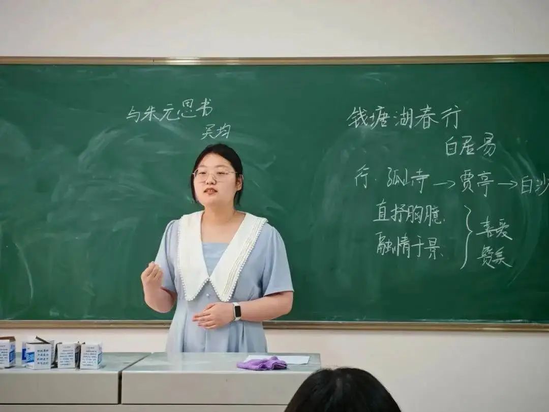 在前期笔试中,同学们展现出扎实专业理论基础。在面试现场,准毕业生更加精神饱满,通过小组讨论、巧妙设问等方式进行精彩教学展示,诠释古诗词和现代文内涵,尽显四年学习成果。