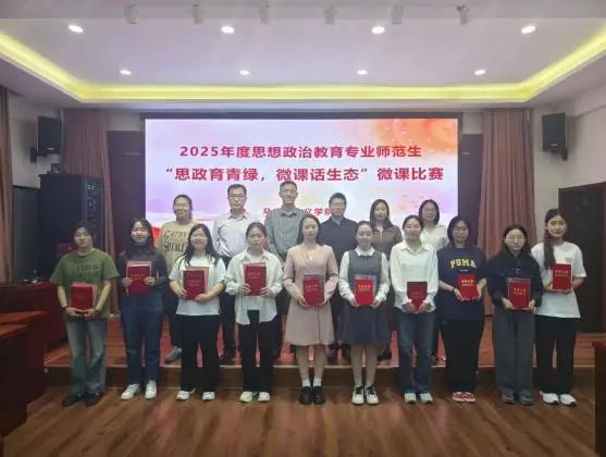 为进一步培养师范生教学能力,提升师范生的教学实践能力与生态文明素养,马克思主义学院精心筹备并举办 2025 年度 “思政育青绿,微课话生态”思想政治教育专业师范生微课比赛。4 月 30 日下午,决赛在理论大讲堂举行。