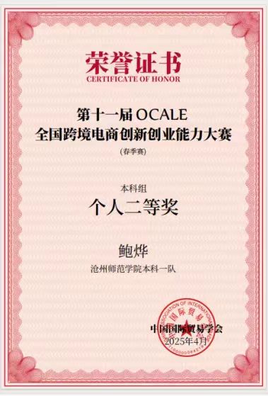 据悉,由中国国际贸易学会主办的第十一届OCALE全国跨境电商创新创业能力大赛(春季赛)于2025年4月29号顺利结束。本次大赛共有2485支参赛队,来自全国28个省(市)、自治区的401所院校,2340位指导老师和9940位参赛学生加了此次比赛。参赛团队经历了两轮练习,于4月27号-29号进行了12个回合的最终角逐。本次比赛扎实地锻炼了参赛选手的创新能力,同时也是对参赛选手积极向上、努力奋斗的拼搏精神与开放、合作团队意识的展现,更是对学院日常专业教学成果的一次巡礼。